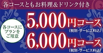 各コースとも、税別・サービス料込となります。